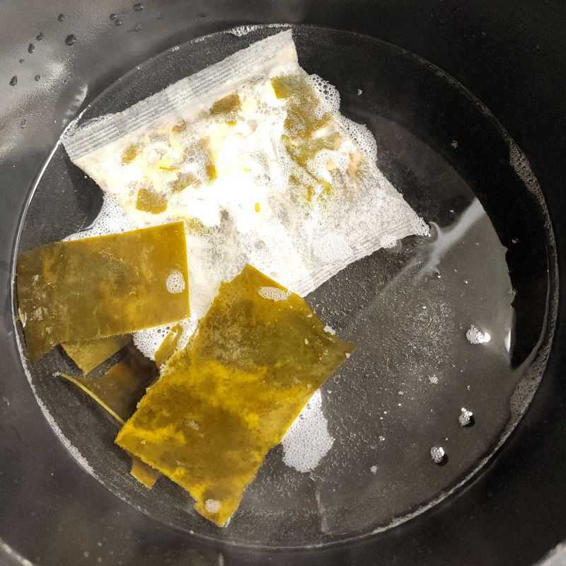 센 불로 냄비에 다시마 15 cm, 육수팩 1 개,