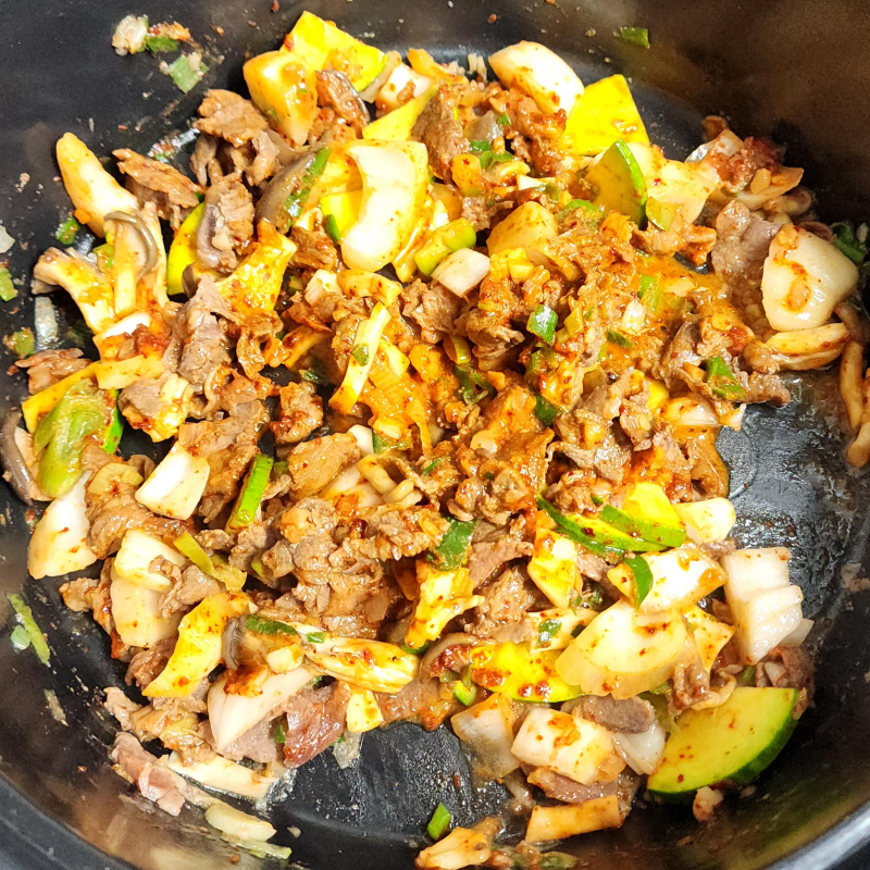 살짝 매콤한 양념에 달걀과 소고기를 끓인